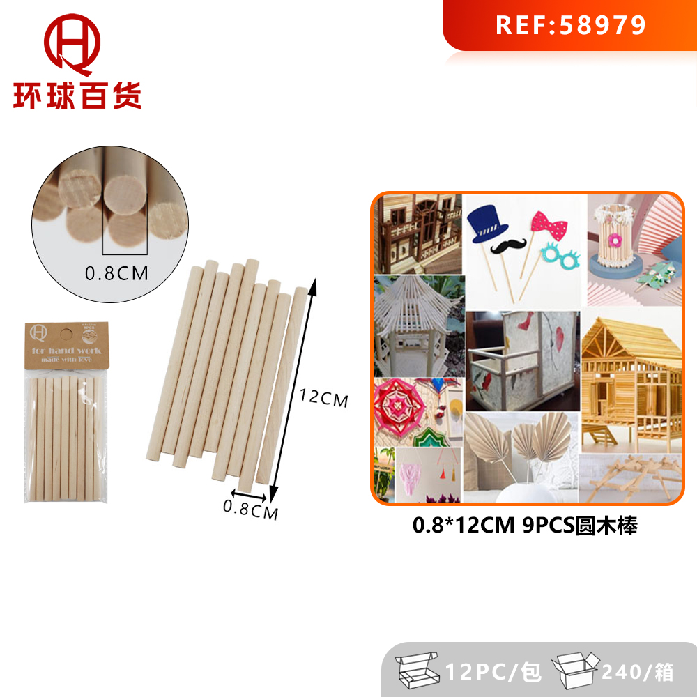 17-A1-0.8*12CM 9PCS Round Wooden Sticks