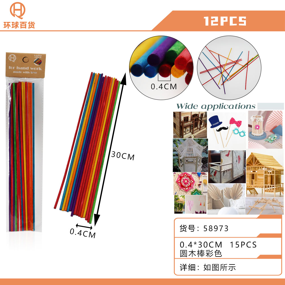 17-B1-0.4*30CM 15PCS Colored Round Wooden Sticks