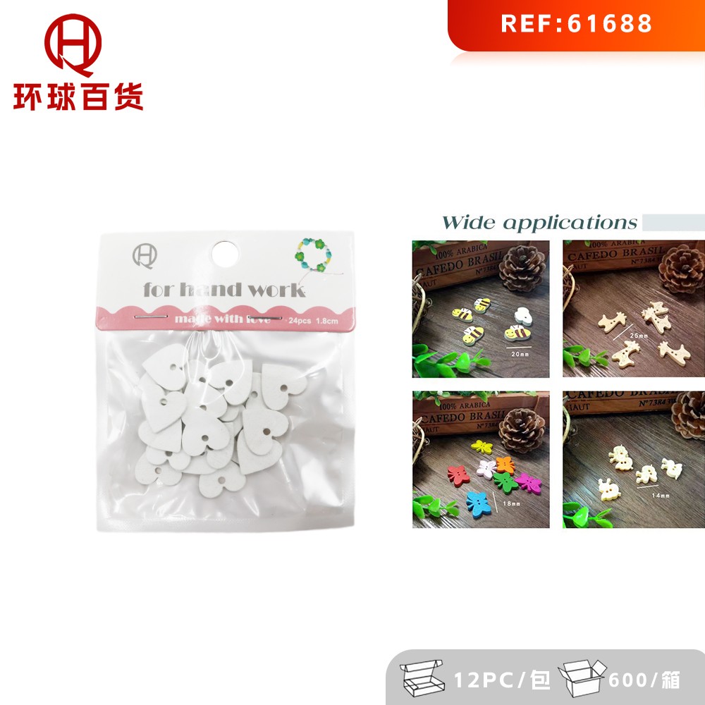 19-J2-White Heart Wooden Piece with Hole, 1.8cm-N "19-I1-Wooden Glasses 7*2.7cm-N"