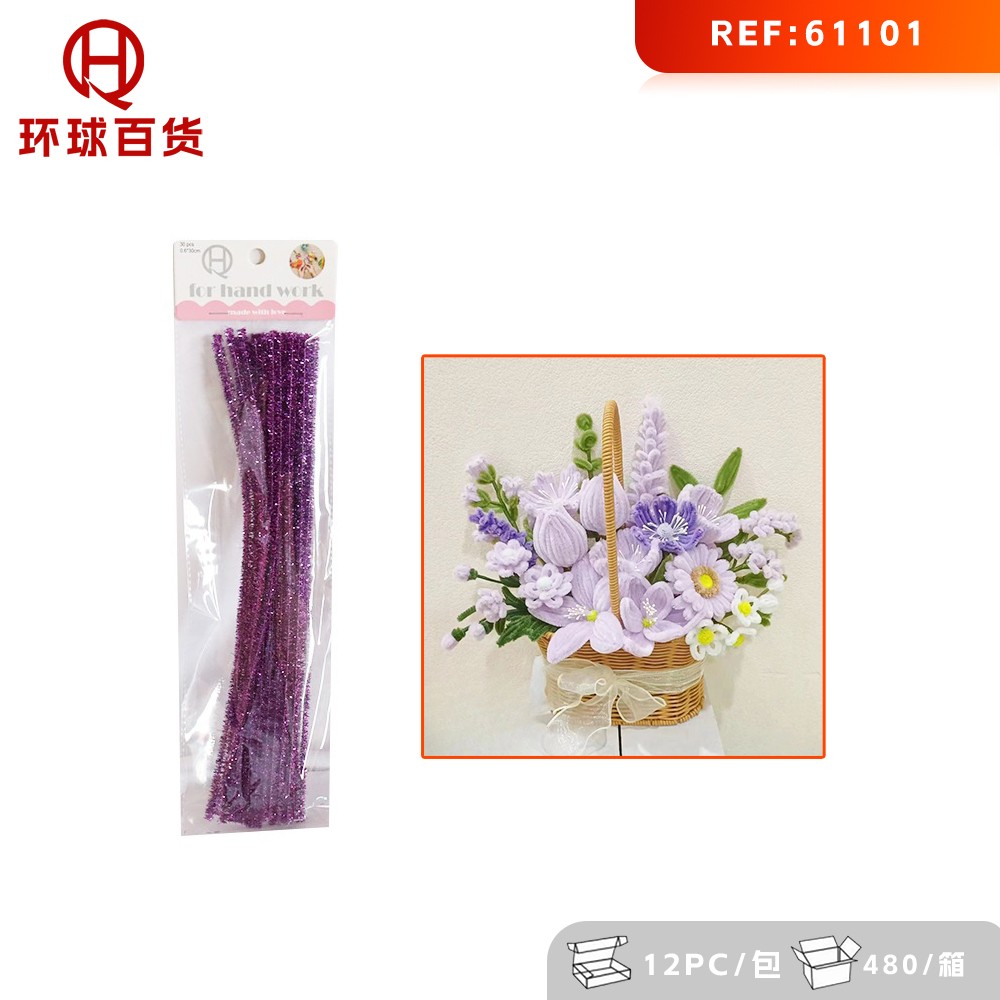 21-A1-30pc Glitter Pipe Rollers 0.6*30cm, Purple