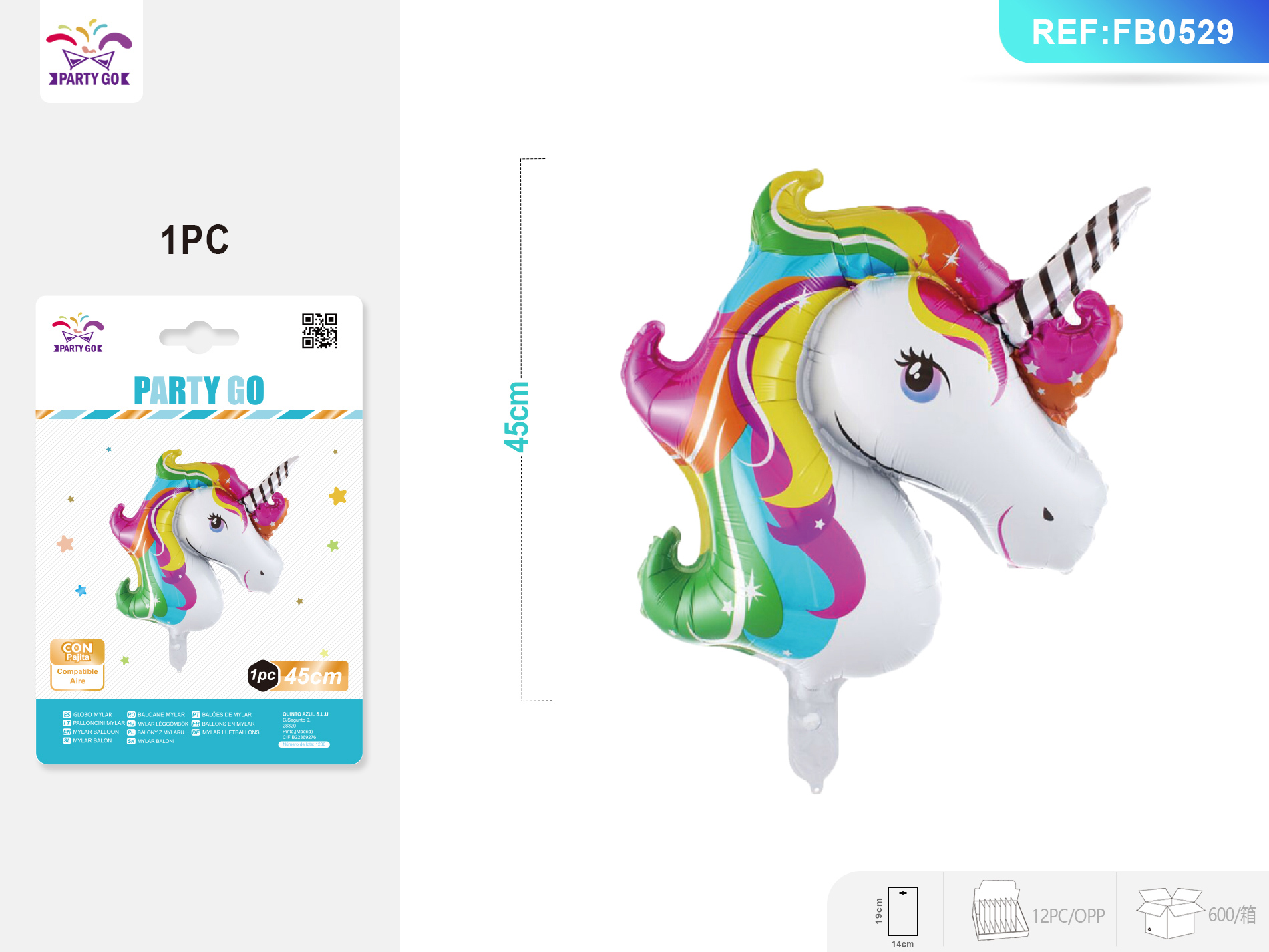 03-M1-Mini Unicorn Head Shaped Aluminum Foil Balloon 45CM 1PC Colorful-N