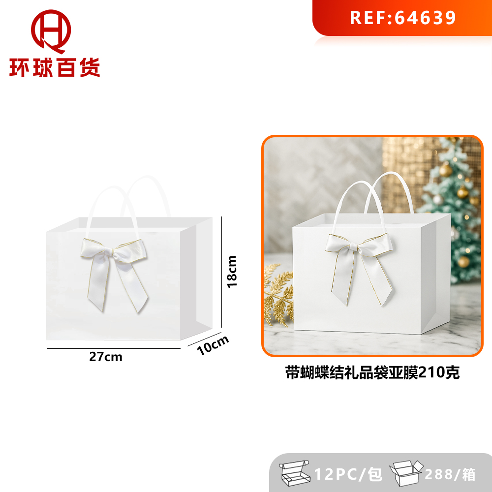 08-I2-18*27*10 Small white horizontal gift bag with bow