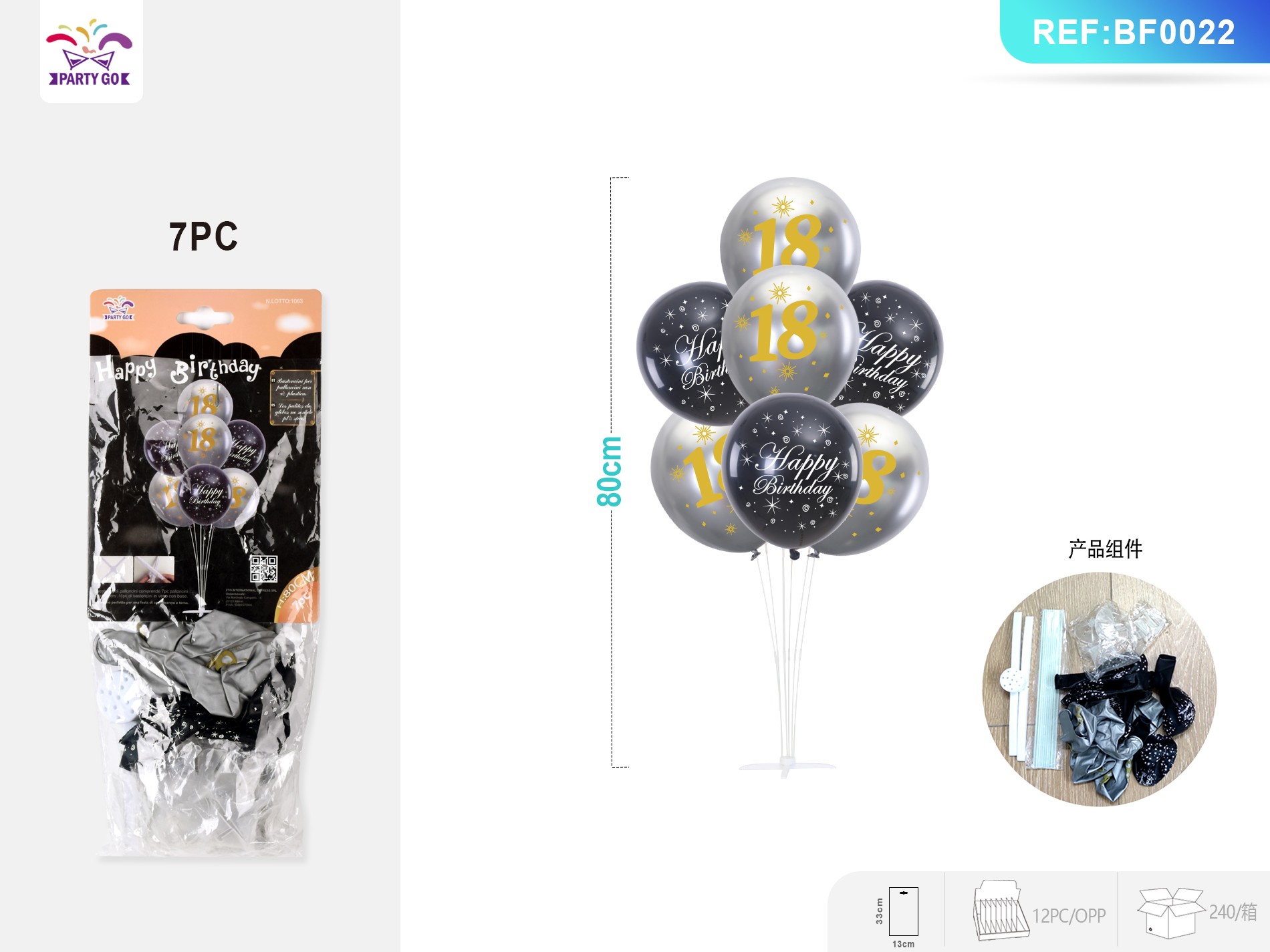 Zestaw balonów stołowych z okazji urodzin 00-D1-18 lat, 7 szt. - N