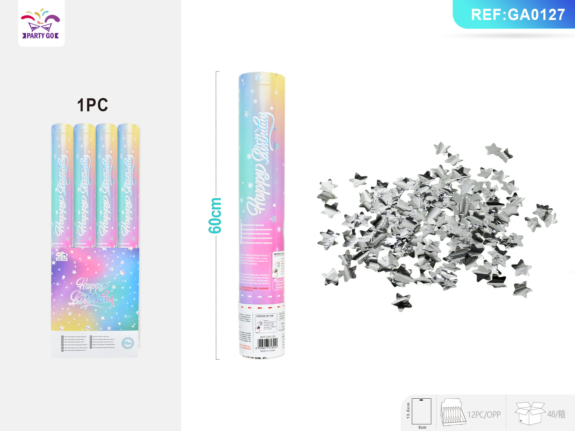 00-D3-60CM Kolorowe srebrne pięciogwiazdkowe błyszczące fajerwerki HP (��3 cm)