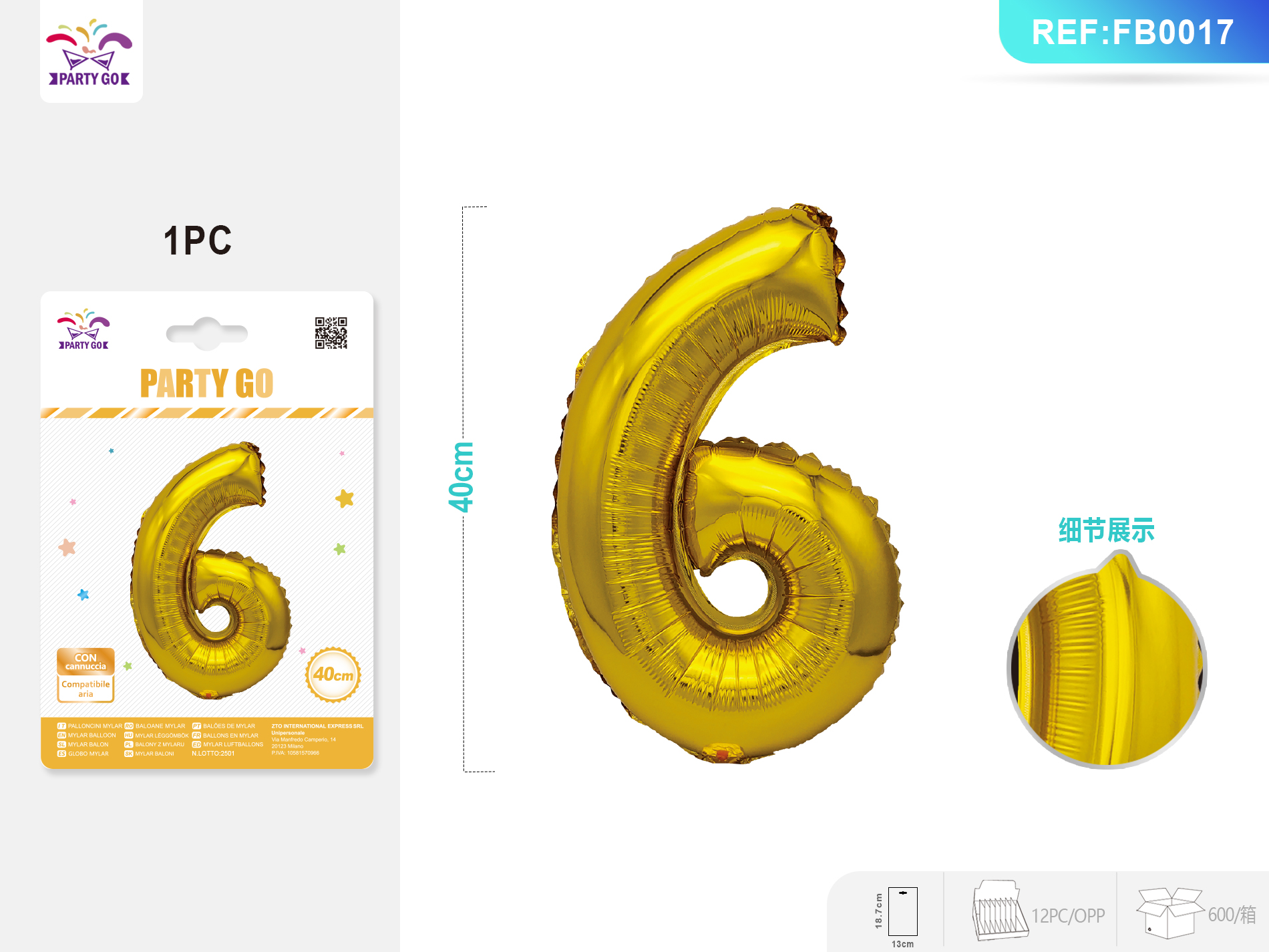 01-C4-Numer 6 40CM Złoty balon z folii aluminiowej
