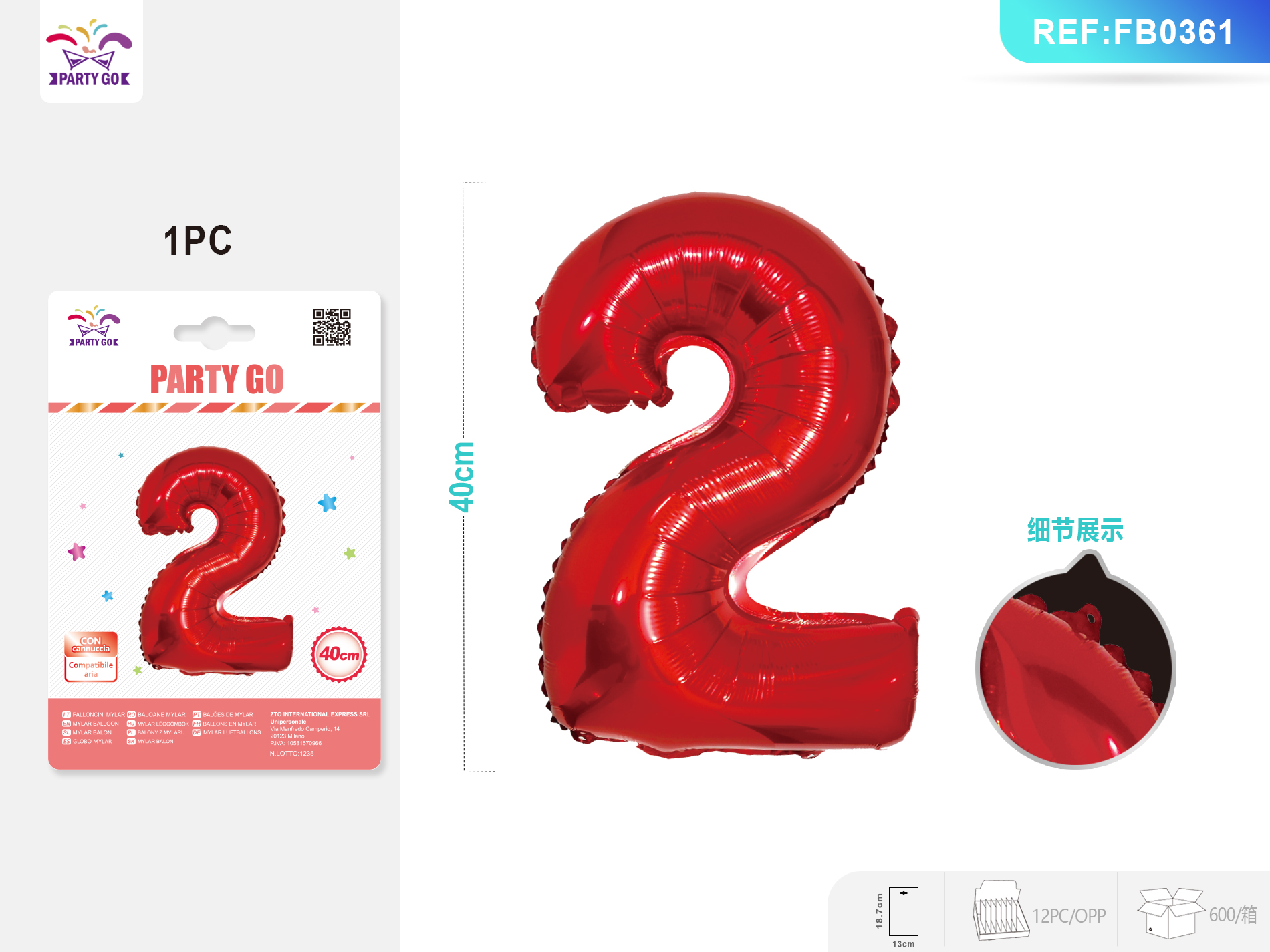01-D3-Number 2 40CM Red Aluminum Foil Balloon