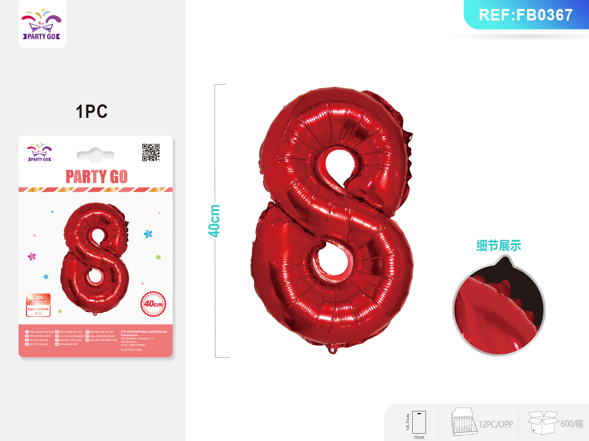 01-F3-Number 8 40CM Red Aluminum Foil Balloon