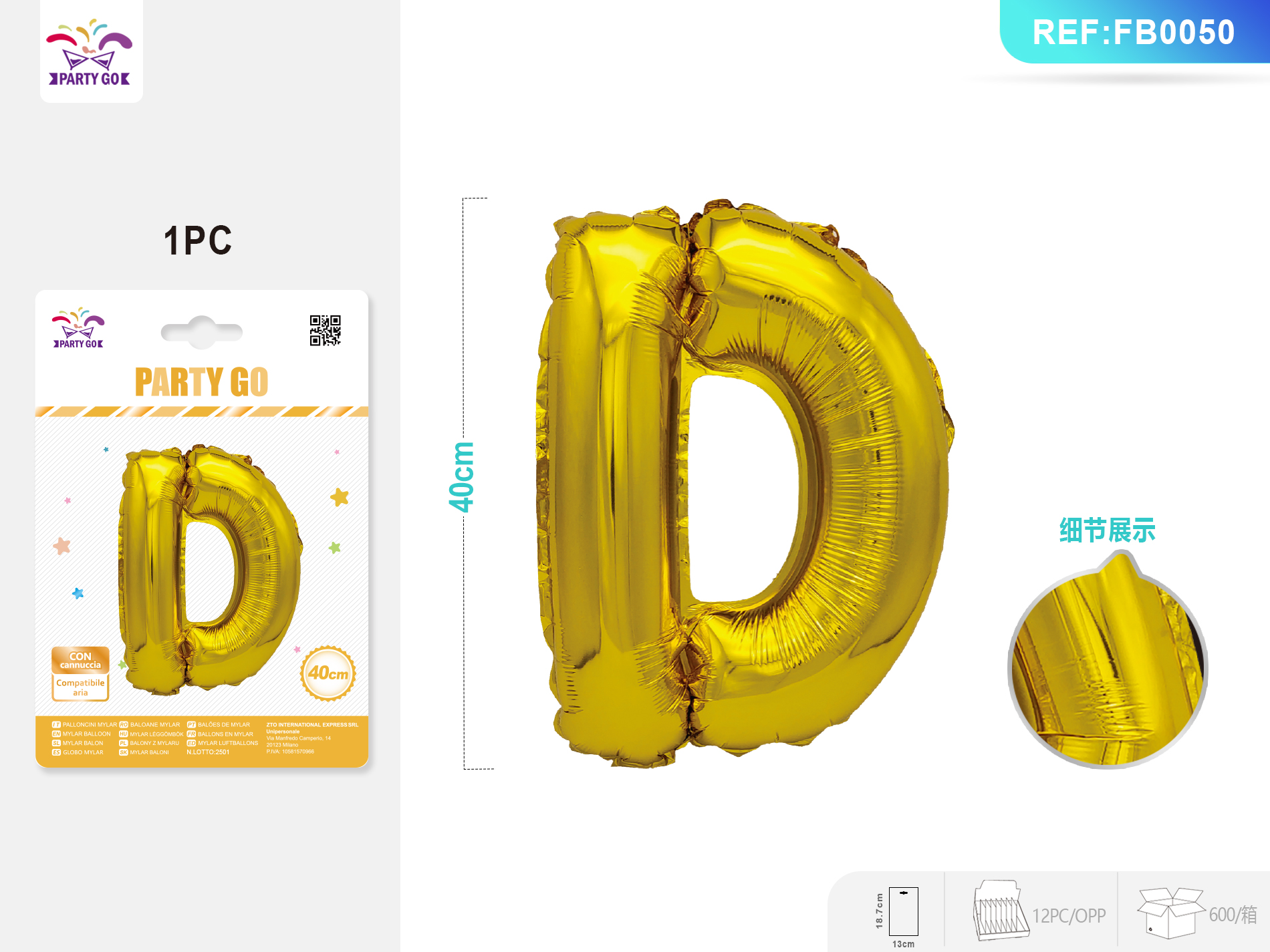 01-N1-Gold Aluminum Foil Balloon, Letter D, 40CM