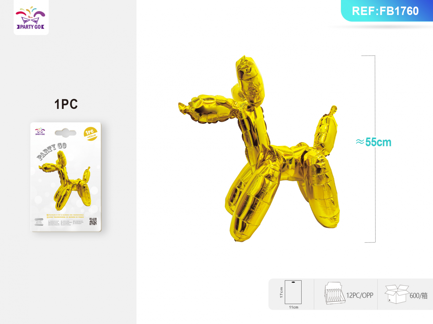 01-Z4-3D Balon Foliowy Pies (55CM, 1szt, Złoty)