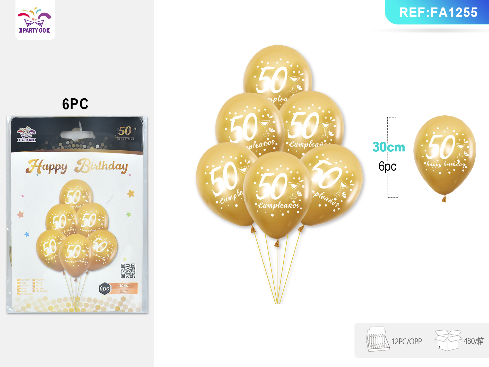 03-J3-50 Years Old Metallic Gold Latex Ball Set 30CM 6PCS