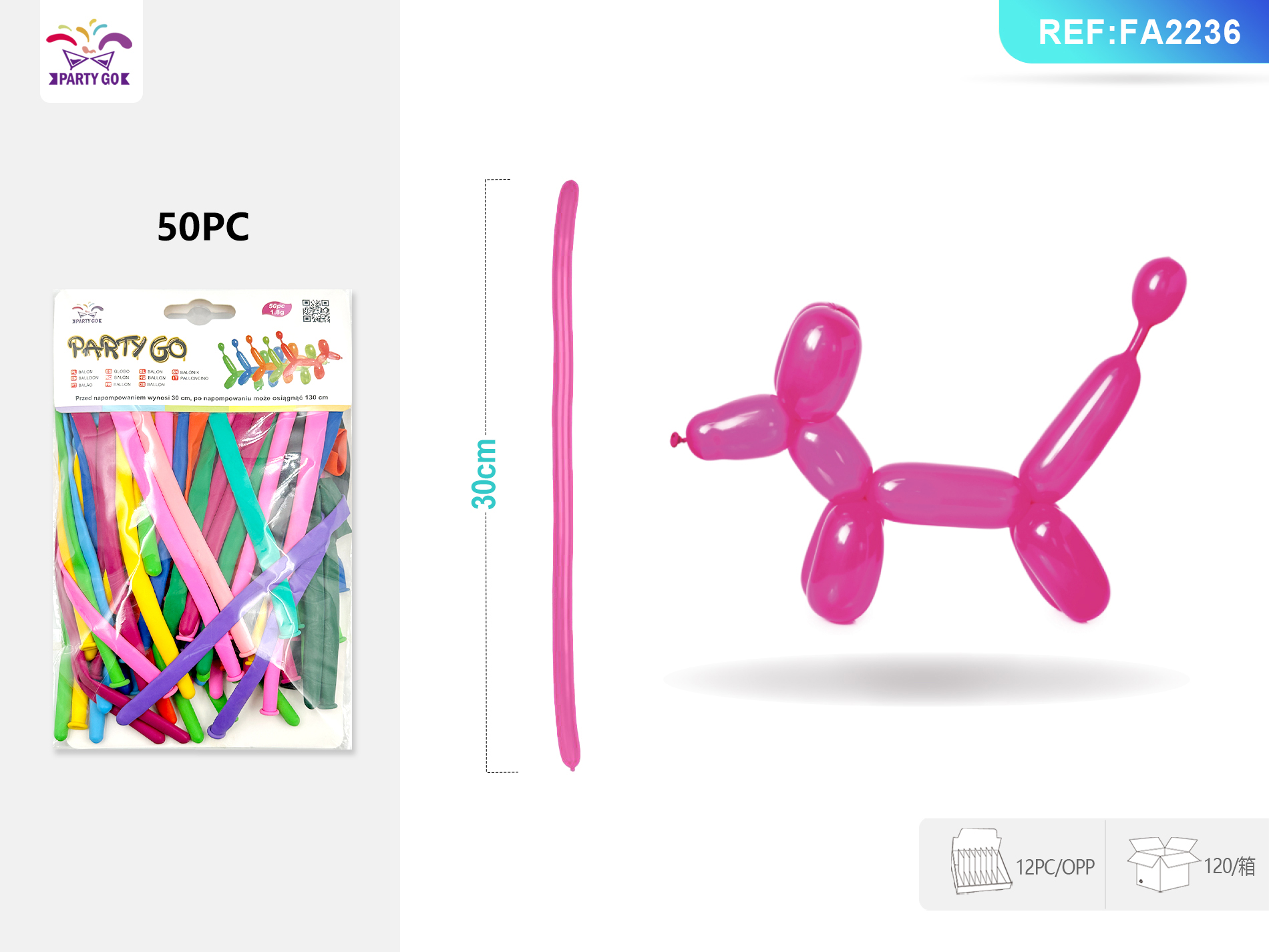 04-G1-1.8G 50PC Mixed Color Matte Long Strip Latex Balloon 30CM
