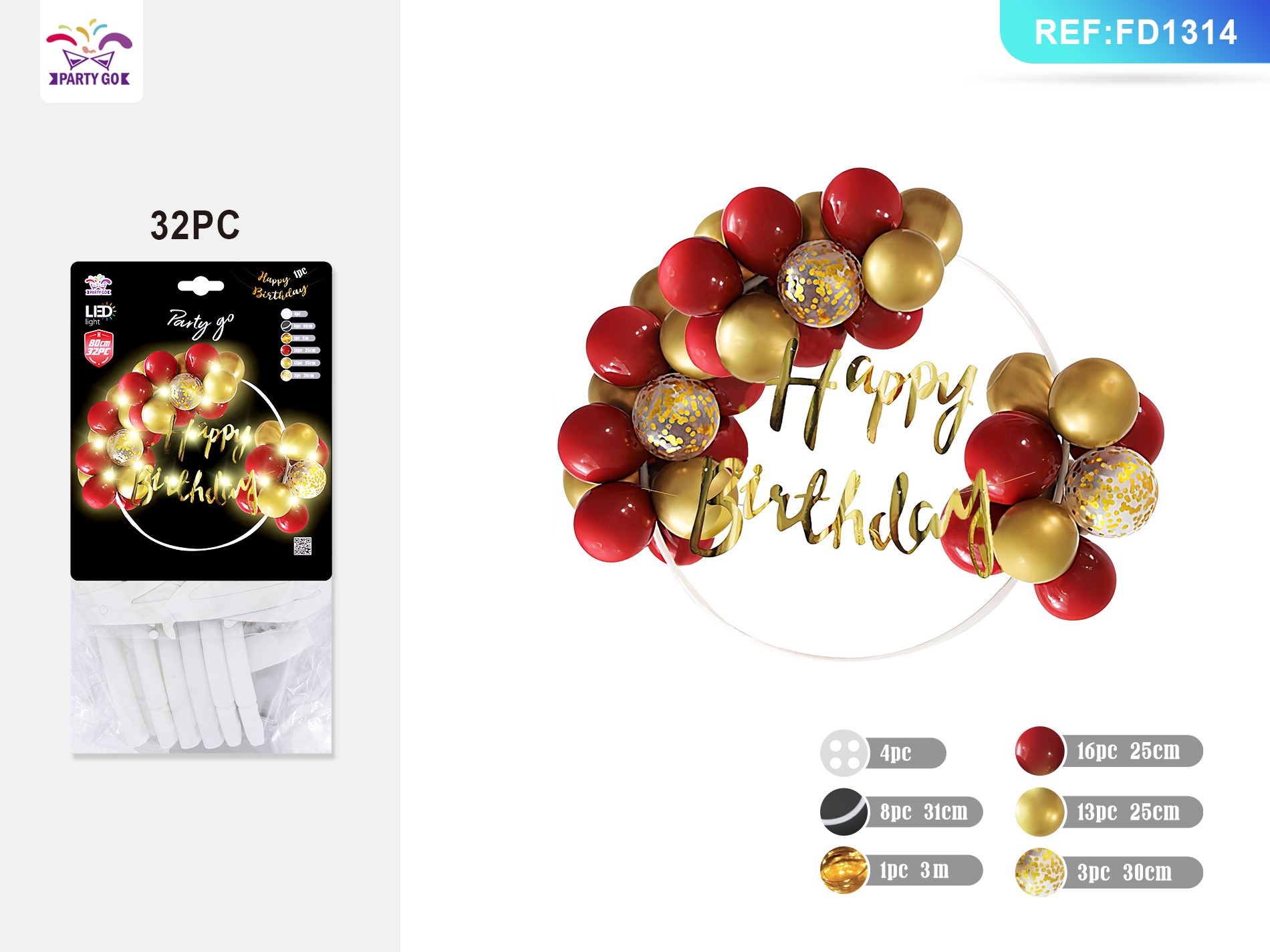 04-M1-Red and Gold HP Illuminated Balloon Rings (32pcs)
