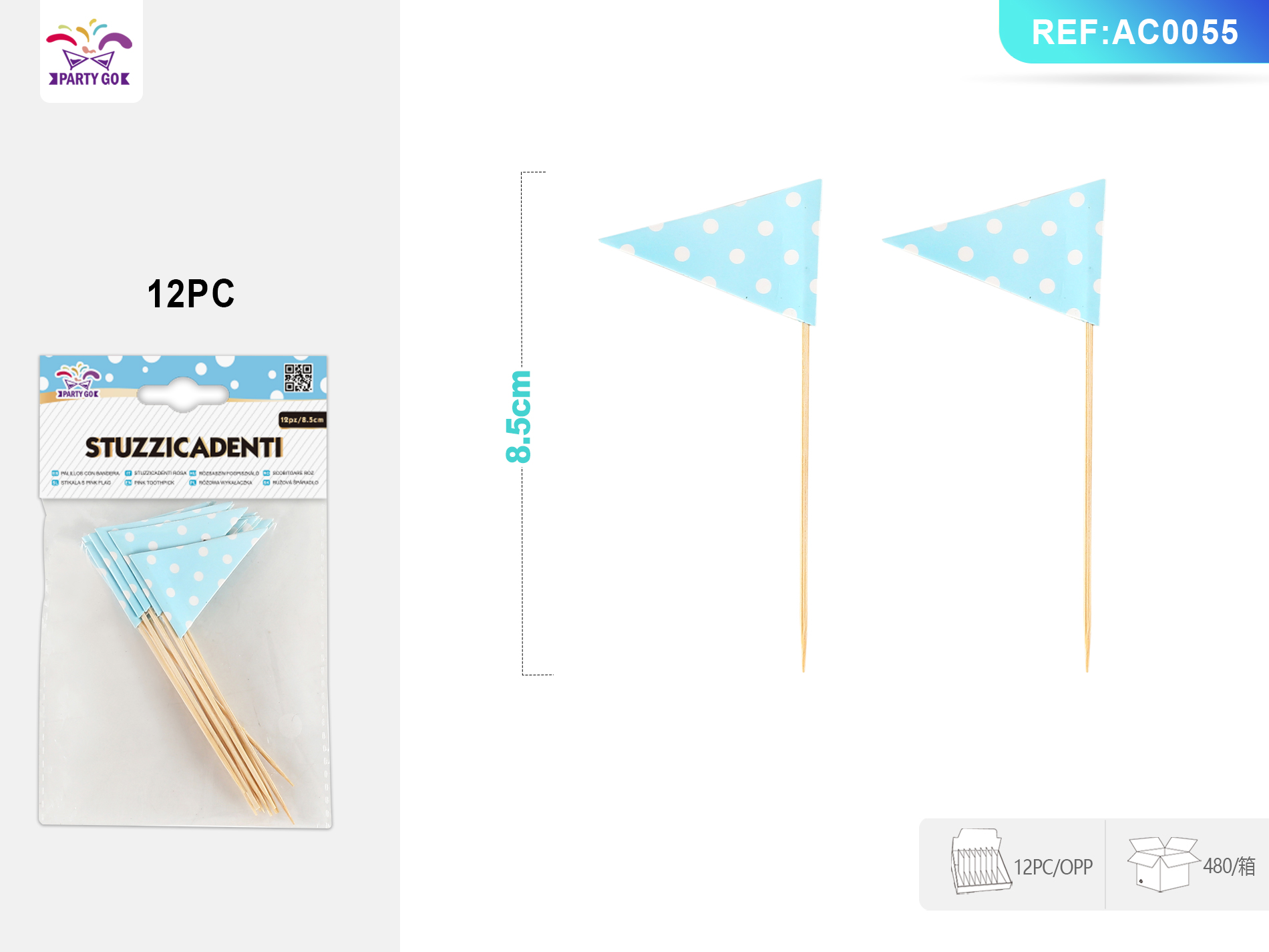 05-K1-Niebieska flaga z wykałaczką w kropki 8,5 cm 12 szt