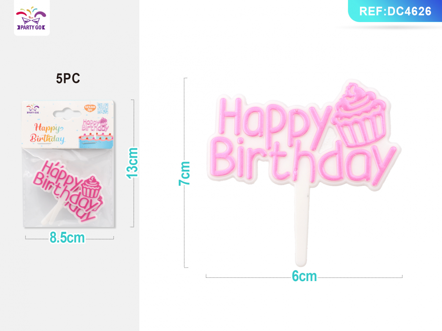 05-M2-Jasnoróżowa wtyczka do angielskiego tortu urodzinowego 6,6*6,3 cm 5 szt