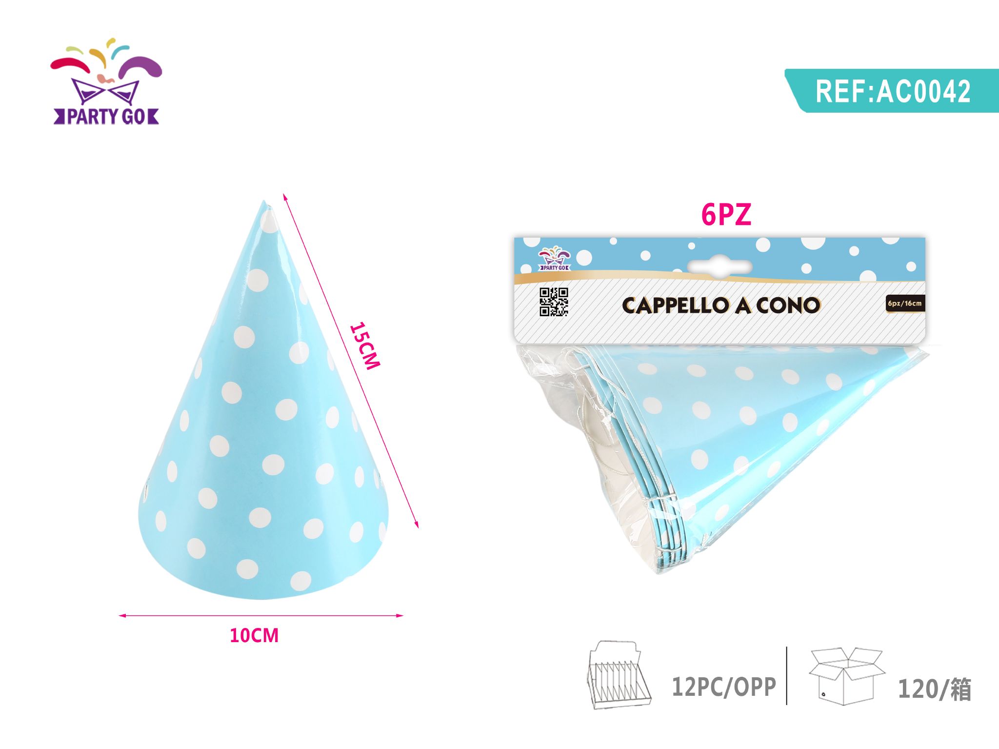 06-E1-Blue Dot Birthday Hat 16CM 6 Pieces