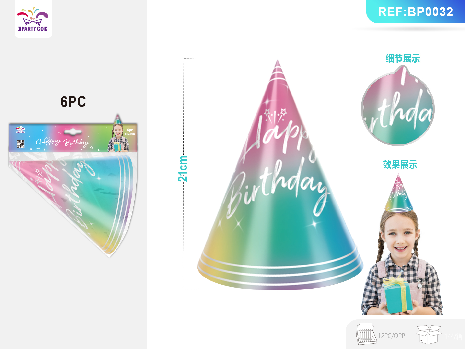 06-E4-Wytłaczana laserowo czapka urodzinowa ze srebrnym trójkątem, 21 cm, 6-częściowy zestaw