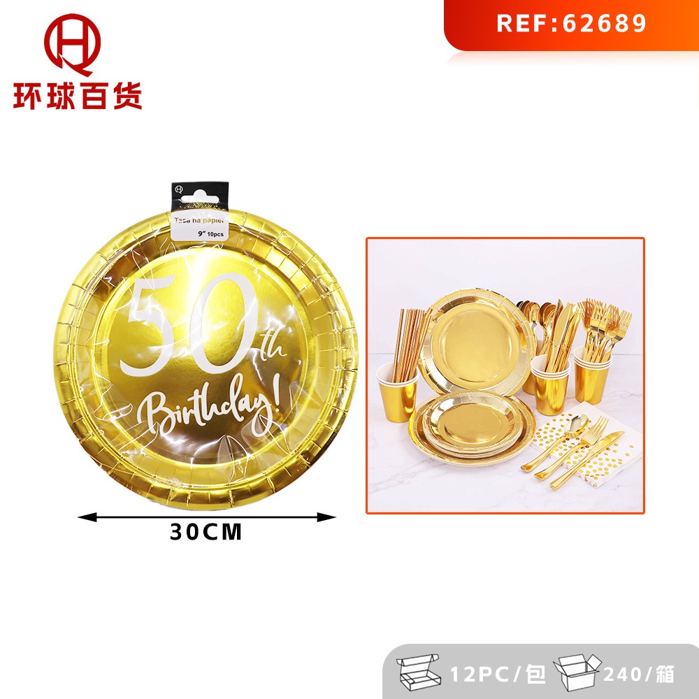 06-N4-9-calowy numer Talerz papierowy z gorącą folią (50 lat)
