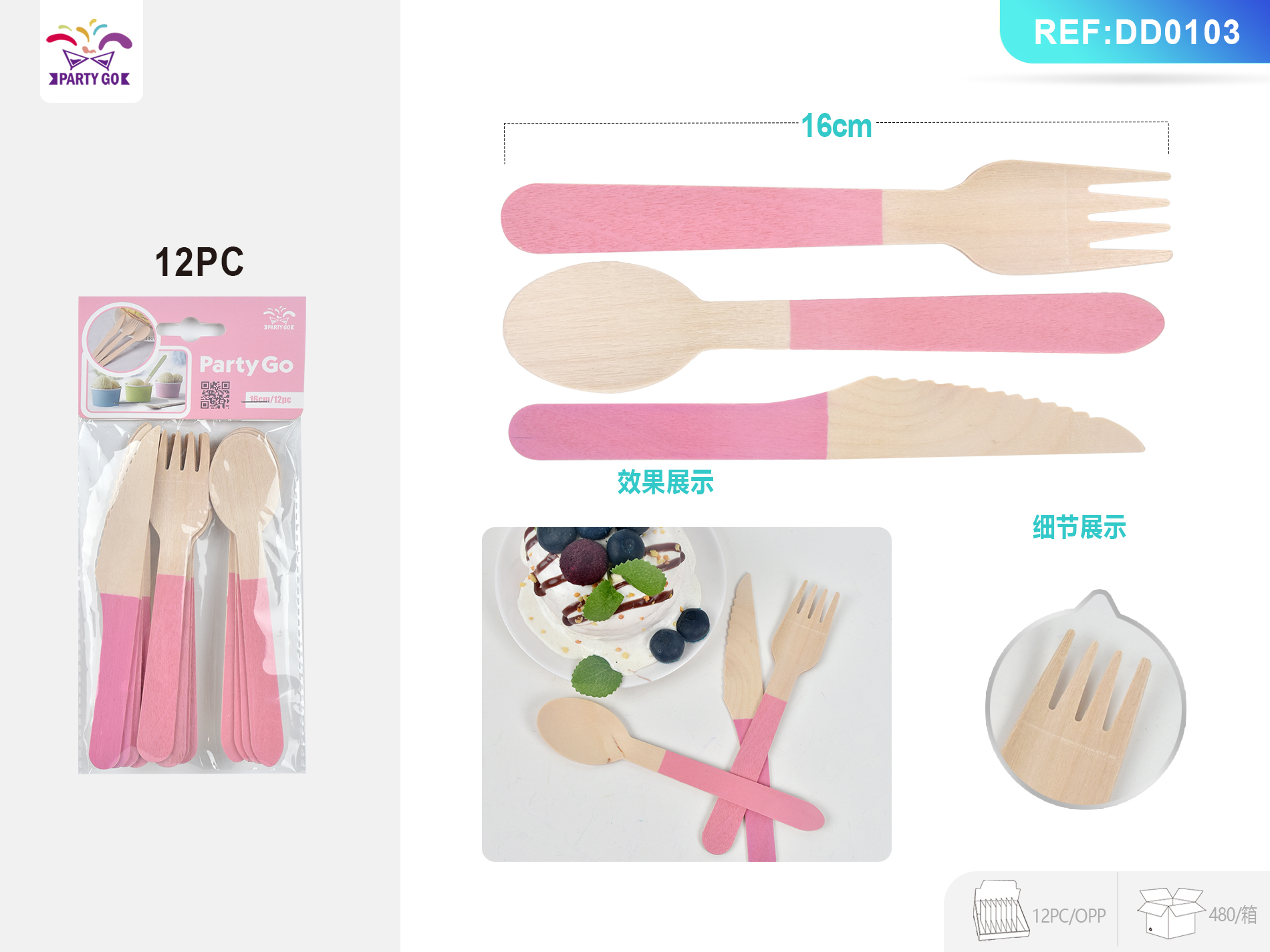 06-O3-Różowy Sztućce z drewna brzozowego 16cm