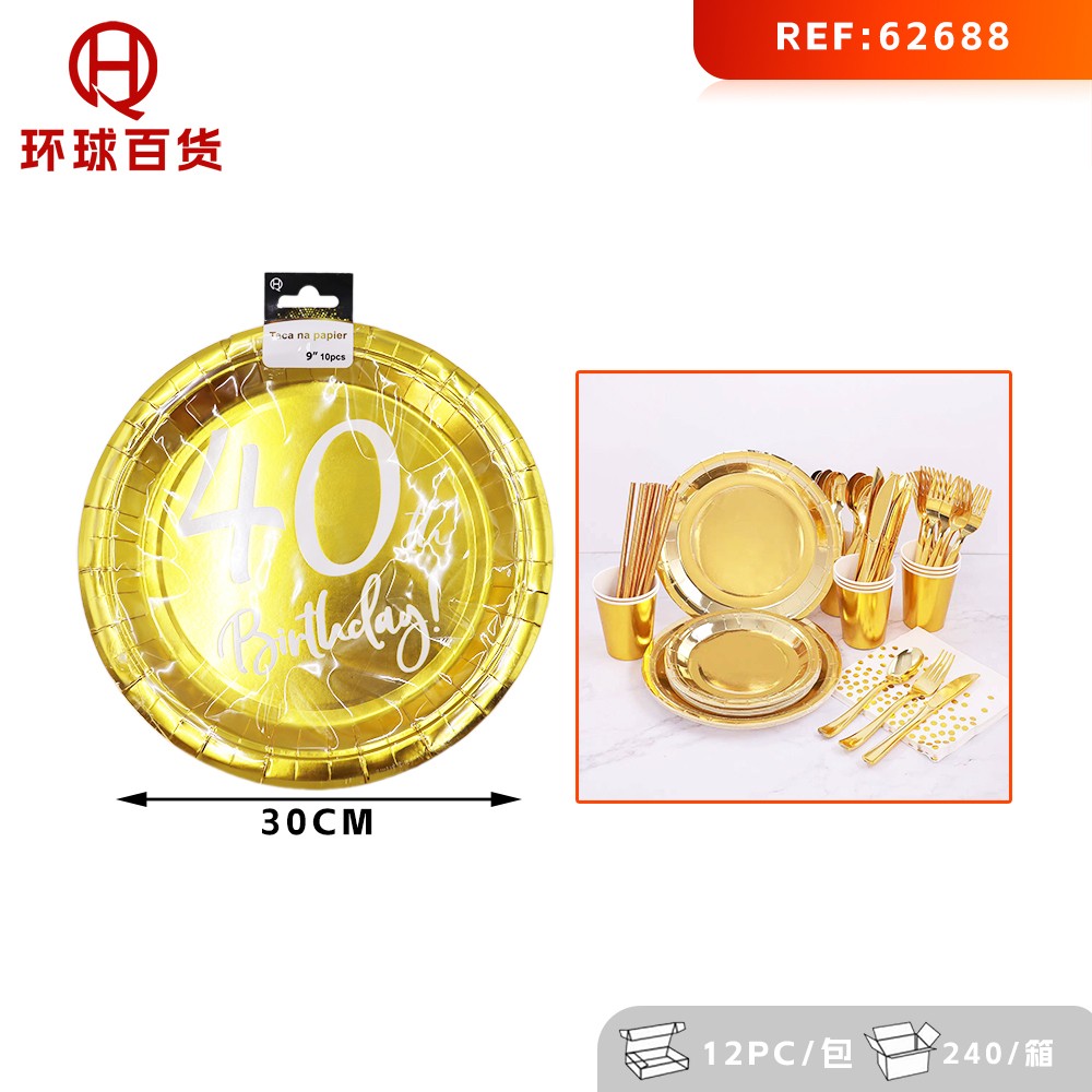 06-O4-9-calowy numer Talerz papierowy z gorącą folią (40 lat)