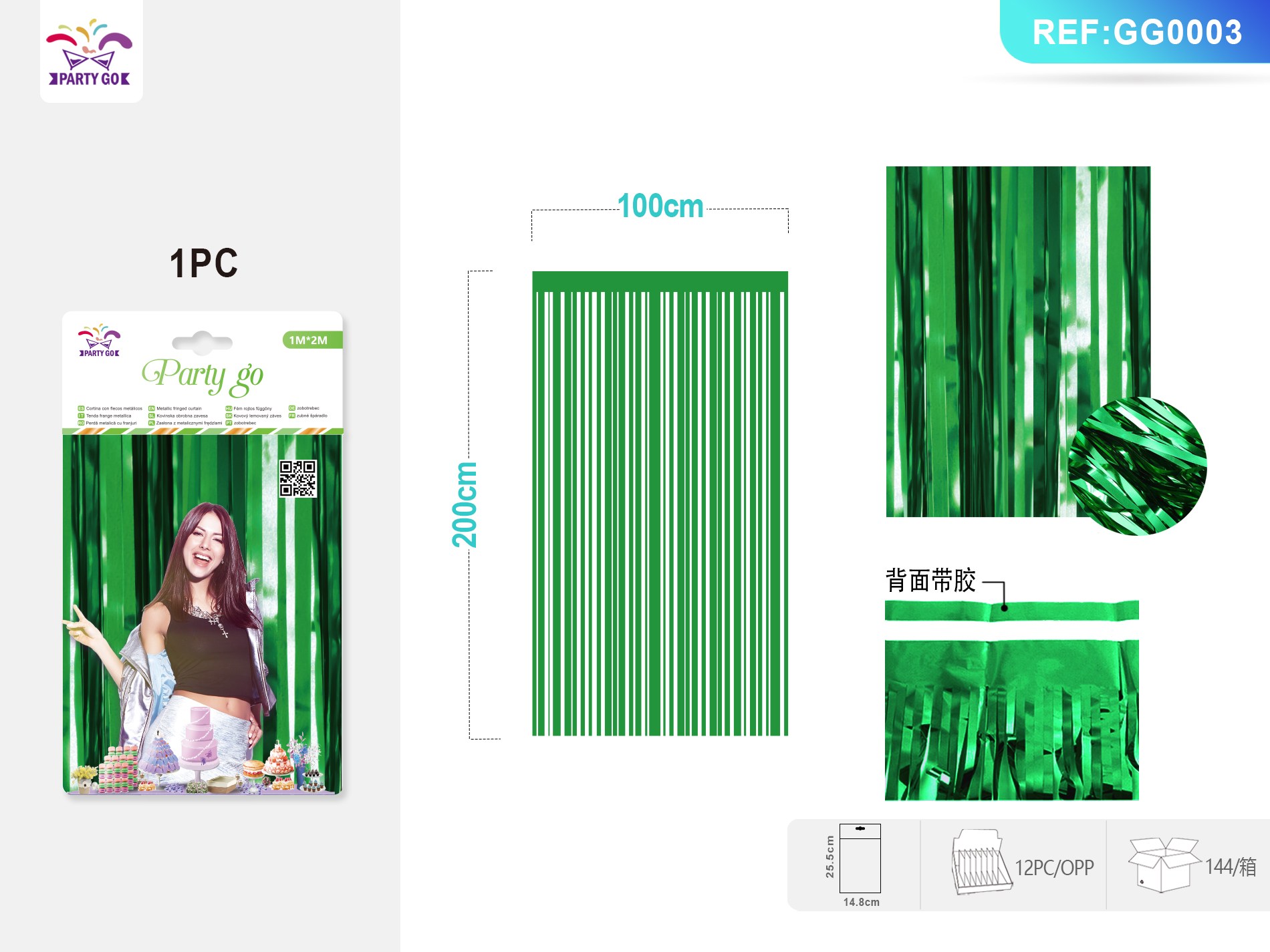 07-M2-Błyszcząca zasłona deszczowa zielona 1 szt. 1*2M