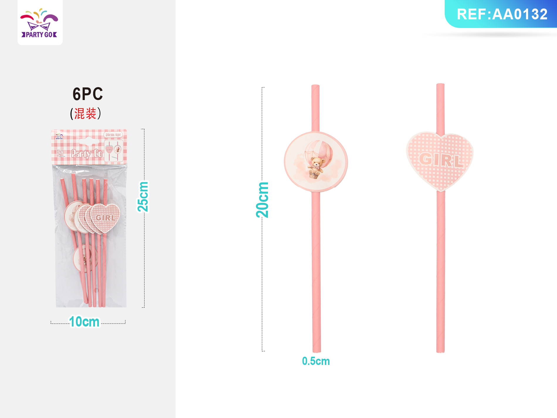 07-N3-English Girl Pink Bear Patch Series Straws (20cm, 6pcs)