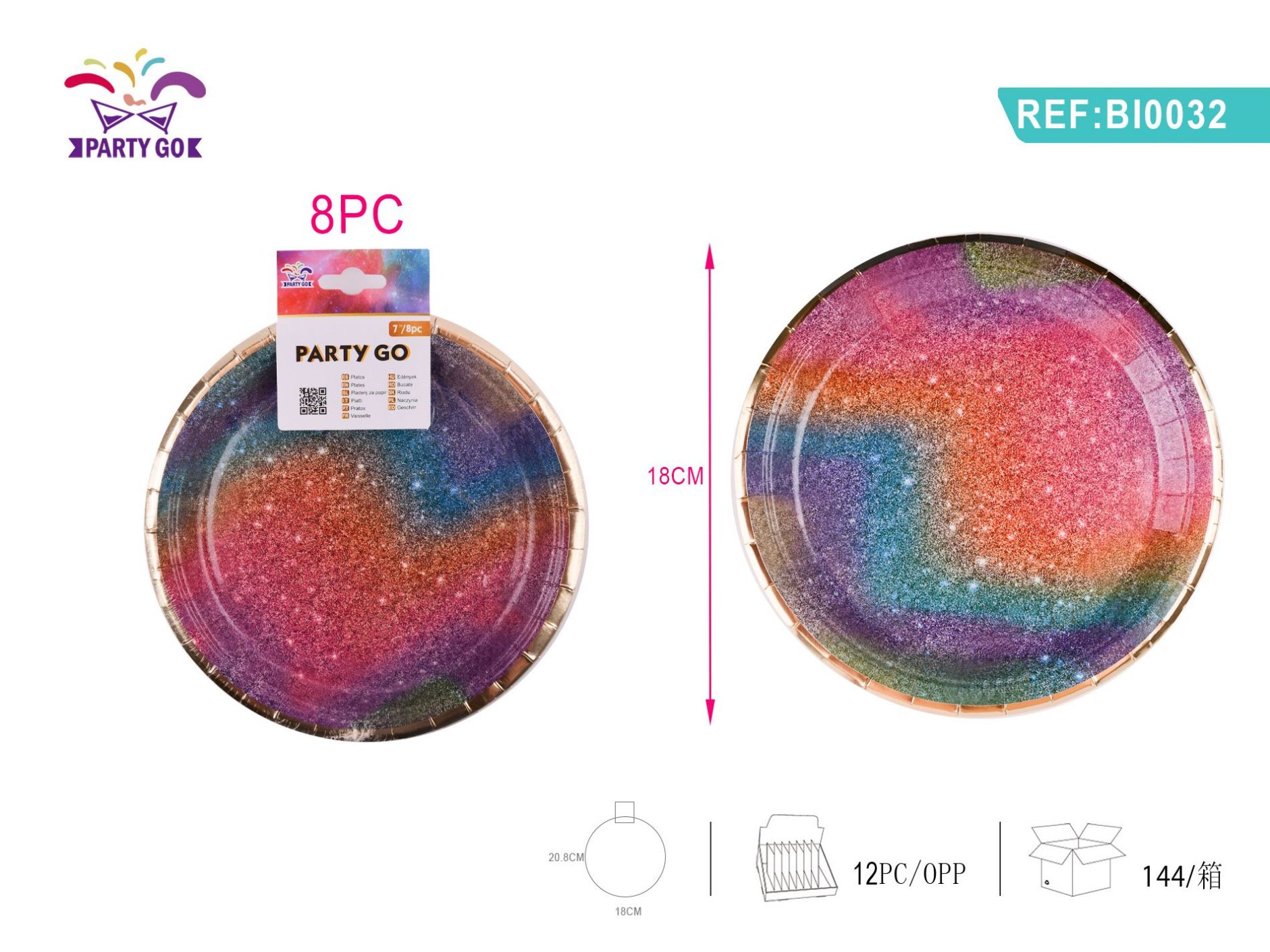 7-calowy opalizujący talerz papierowy ze złotej folii, �� 18CM, 8szt-N