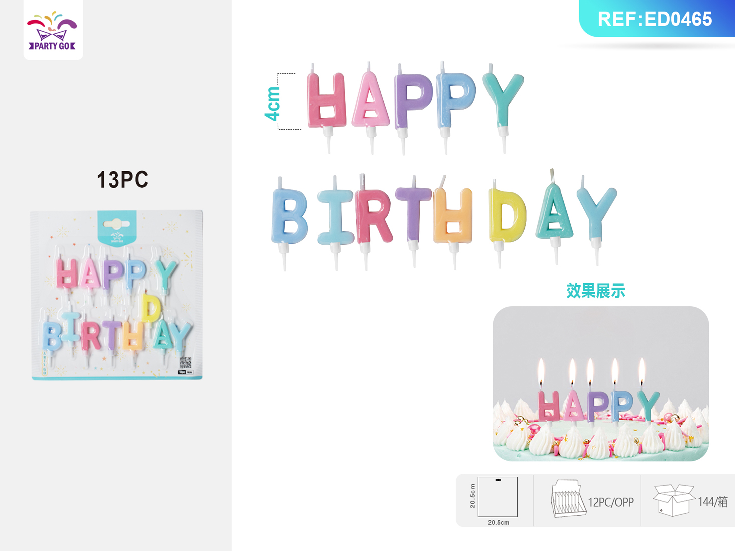 02-J3-4CM Macaron Seven-Color Happy Letter 13PC